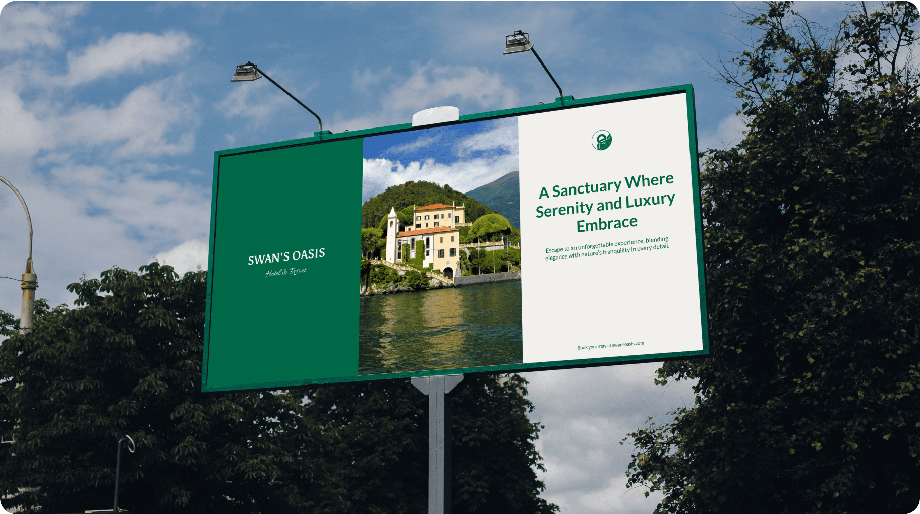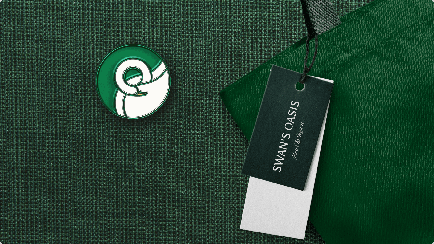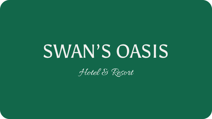 The brand identity centers on a graceful swan motif, inspired by the swans that grace the lake near the Swan’s Oasis hotel.
