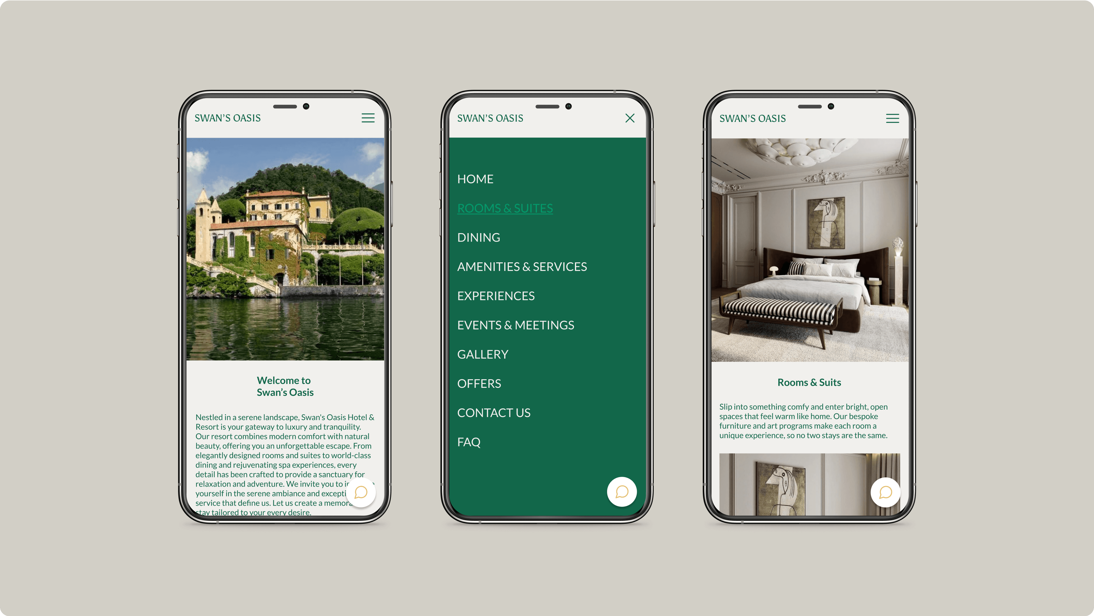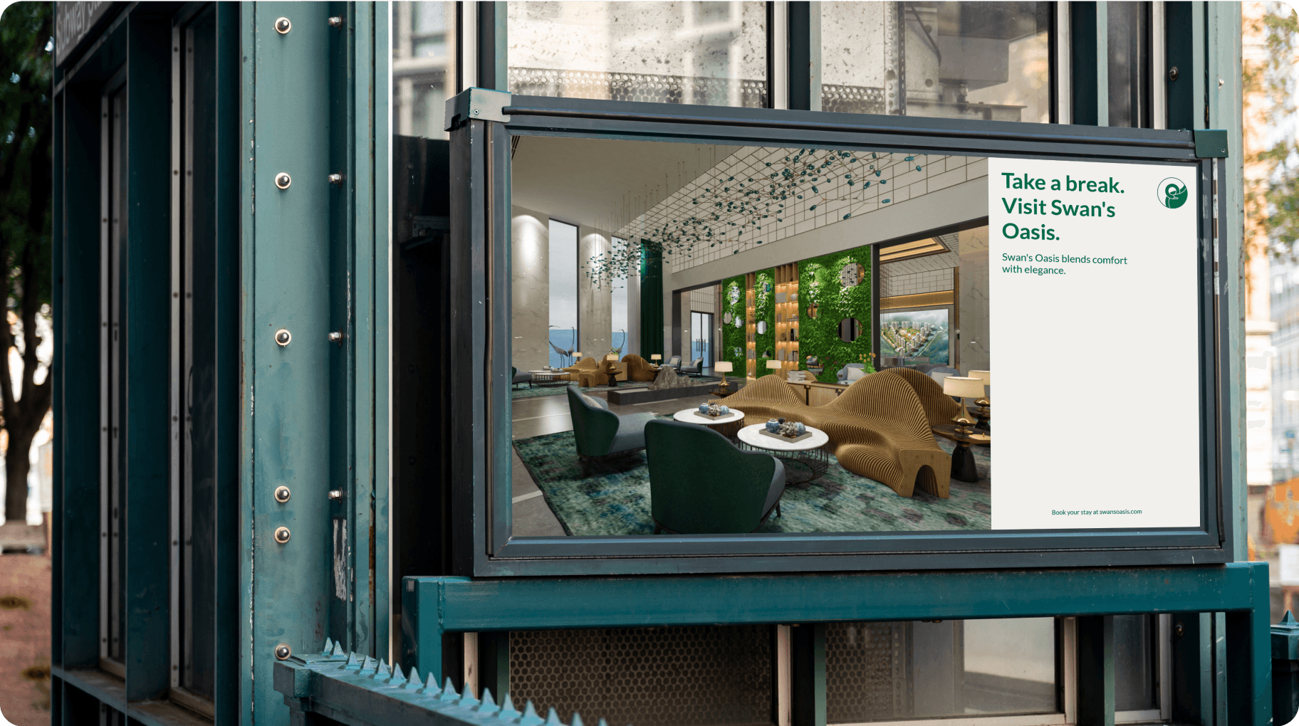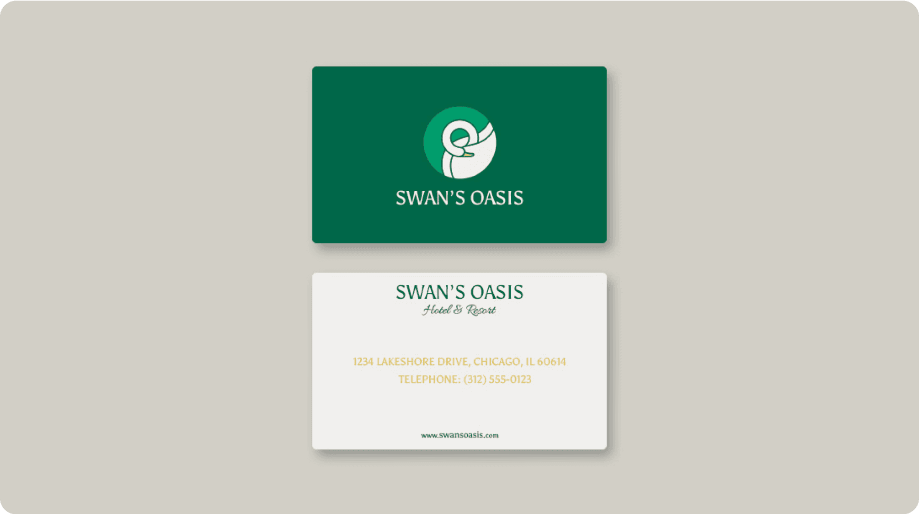 The brand identity centers on a graceful swan motif, inspired by the swans that grace the lake near the Swan’s Oasis hotel.