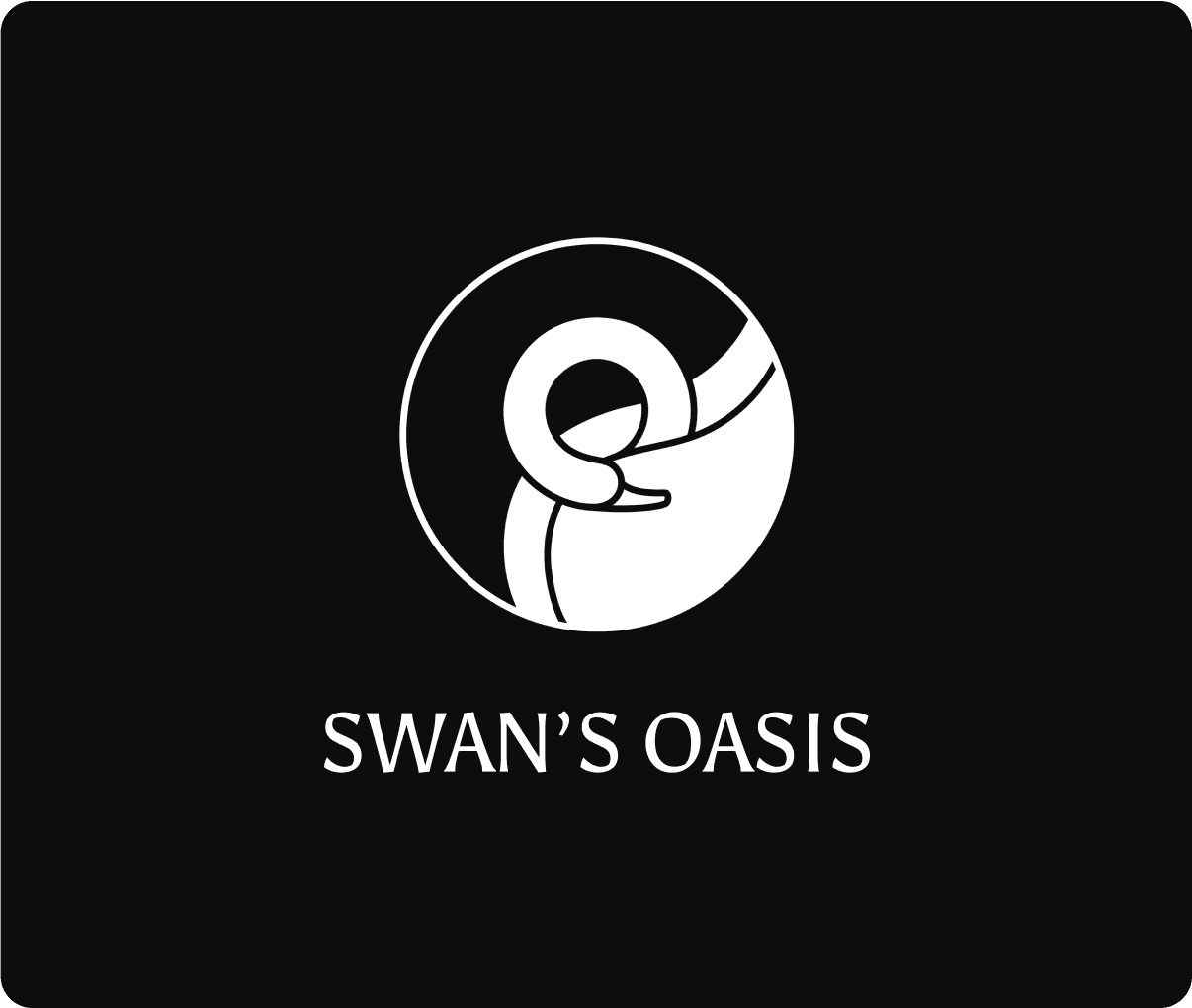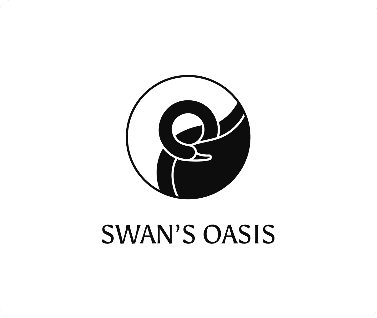 The logo is designed entirely from circles, capturing both a swan motif and the natural flow of life. The swan’s neck subtly forms the letter “O” in Oasis.